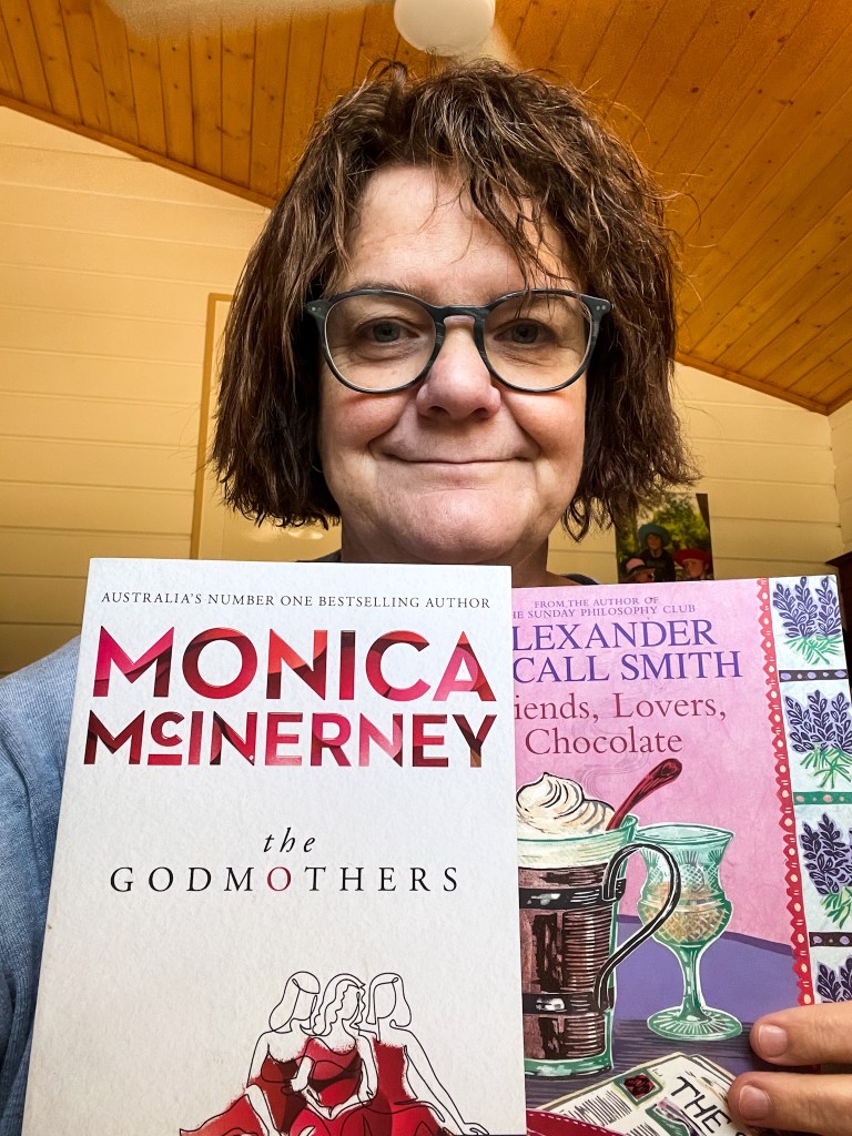 Fiona is drawn to books that feature a far-flung destination, great characters and a writing style that allows her to relax. She quite enjoys rereading the books of her favourite authors, Monica McInerney and Alexander McCall Smith, and their books dominate a decent portion of her shelves (which can be seen on Instagram and the cover image for this blog post). She recommends The Godmothers by McInerney and Friends, Lovers, Chocolate by McCall Smith.